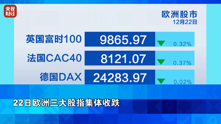 欧洲方面,随着西方国家传统节假日临近,欧洲多国股市交投清淡,部分科技、零售蓝筹股表现不佳,欧洲三大股指周一集体收跌。截至收盘,英国股市跌0.32%,法国股市跌0.37%,德国股市微跌0.02%。
